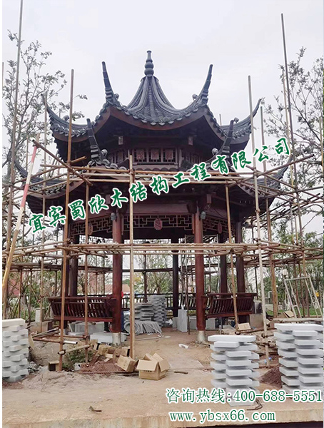 双层仿古木亭位于高县高洲酒业园区,高洲酒业公司产品严格按照多粮浓香型传统生产工艺流程,结合高洲酒业成熟的生产工艺技术精心酿制。现企业规模实力不断壮大,发展势头强劲,产业涉及食品、地产、农副产品加工等领域。